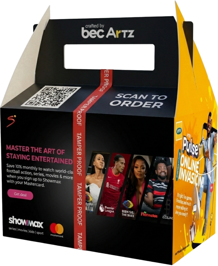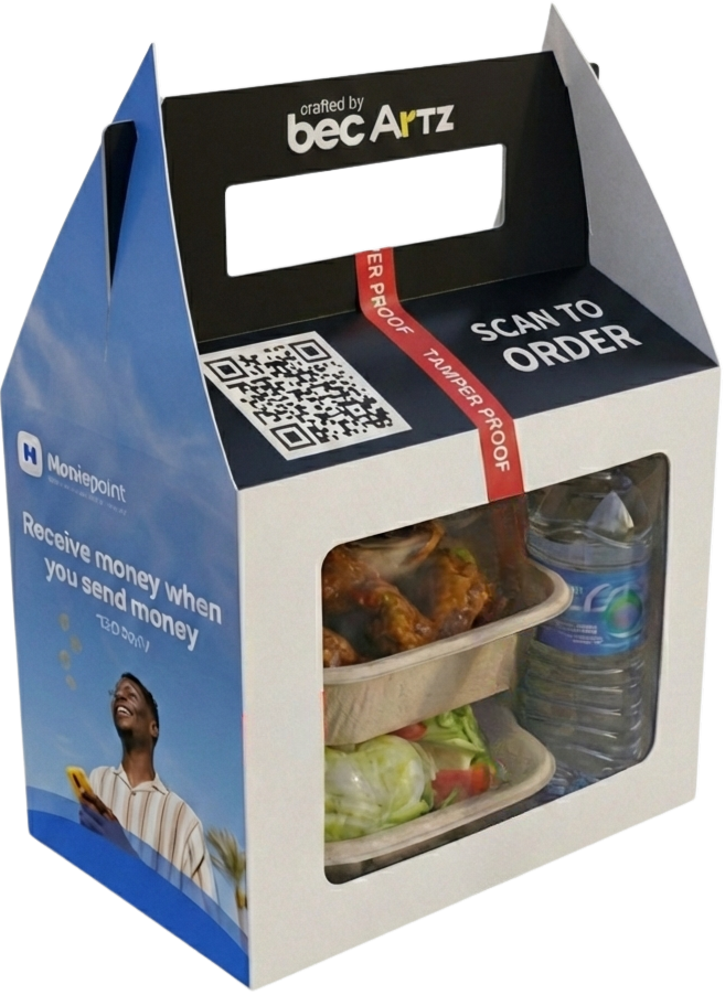 Artzy box — tamper-proof, previewable food packaging that sells your ad.